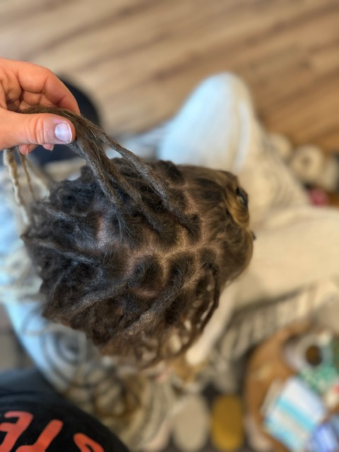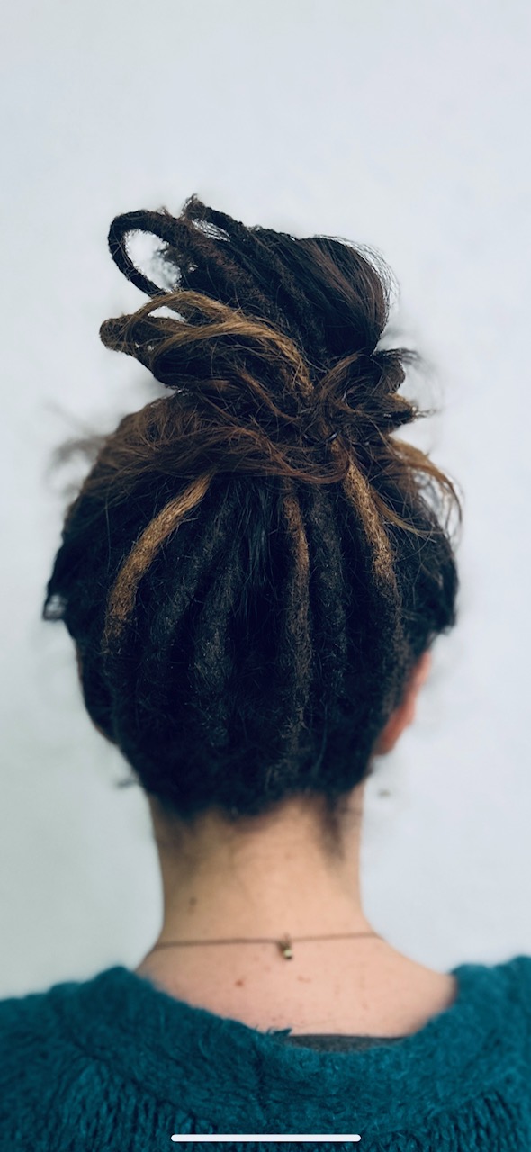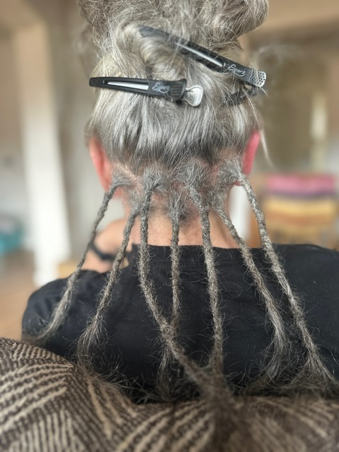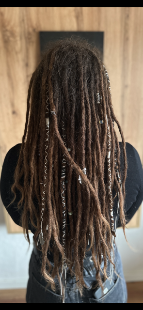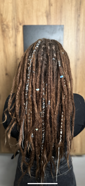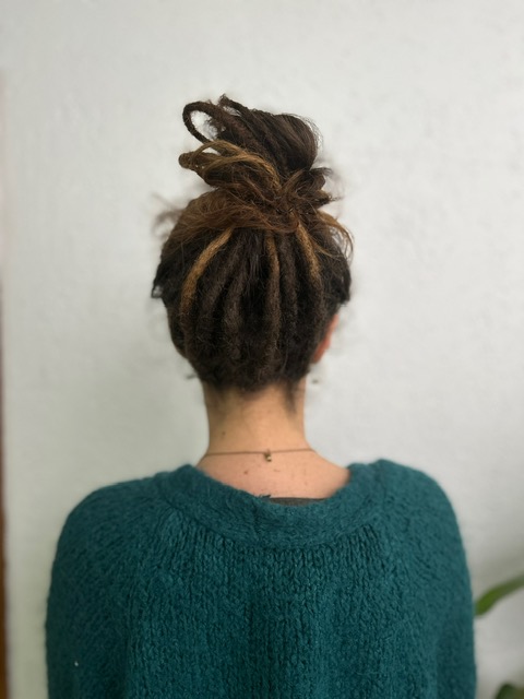 Die Leidenschaft dafür wurde so groß, dass ich begann, an mir selbst zu lernen, zu fühlen und zu verstehen, was diese besondere Haarform wirklich bedeutet. 2022 habe ich schließlich zwei Ausbildungen zur Dreadlocksstylistin absolviert, um meine Intuition mit fundiertem Wissen zu verbinden. Seitdem erstelle ich im Nebengewerbe mit viel Hingabe individuelle Dreadlocks.